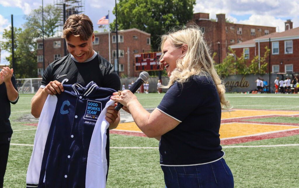 Crawford received his award Aug. 24, before kickoff at Loyola’s match against Purdue Fort Wayne. ESPN’s Holly Rowe presented the award to Crawford with a varsity jacket during the surprise ceremony, leaving Crawford stunned.