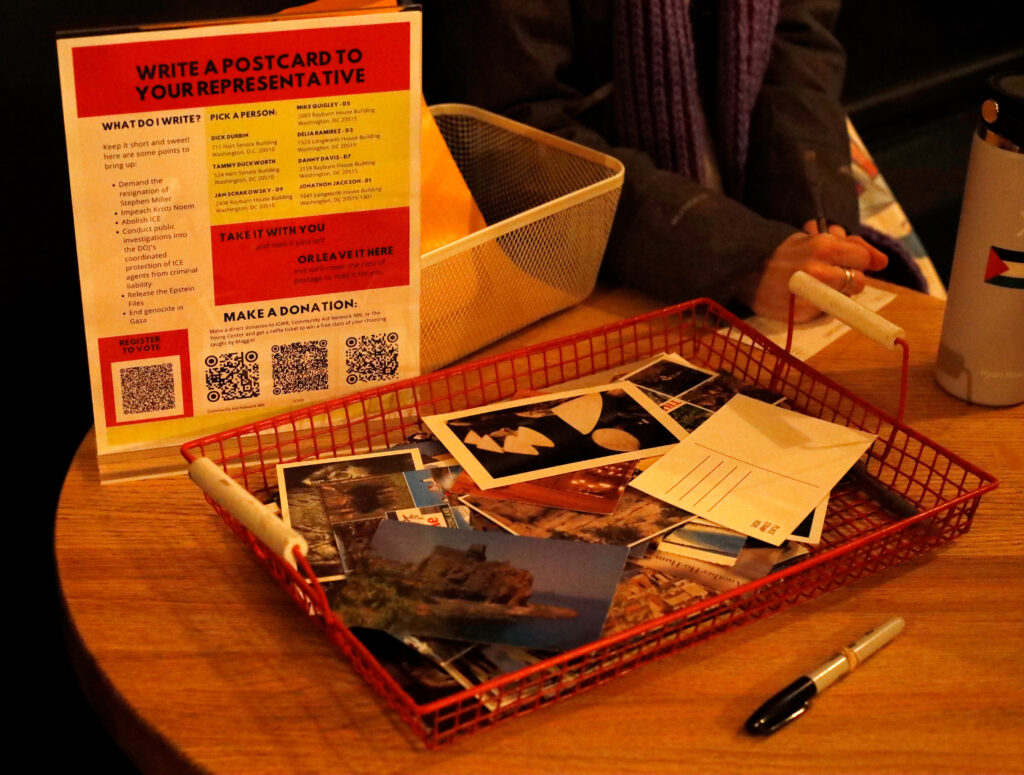 What was unfolding in Minneapolis and across Minnesota pressed into the coffee shop’s tight enclave without needing to be narrated. ICE’s presence, marked by unjust arrests, surveillance and child detainment, sparked a call-to-action initiative.
